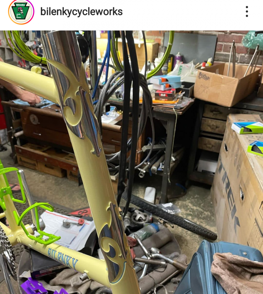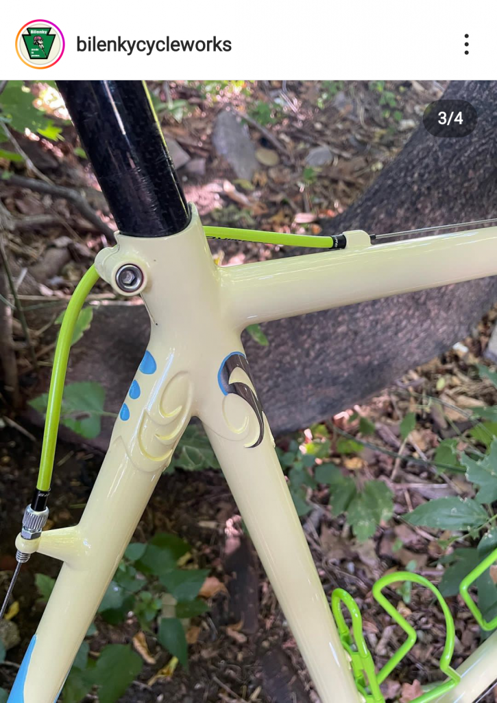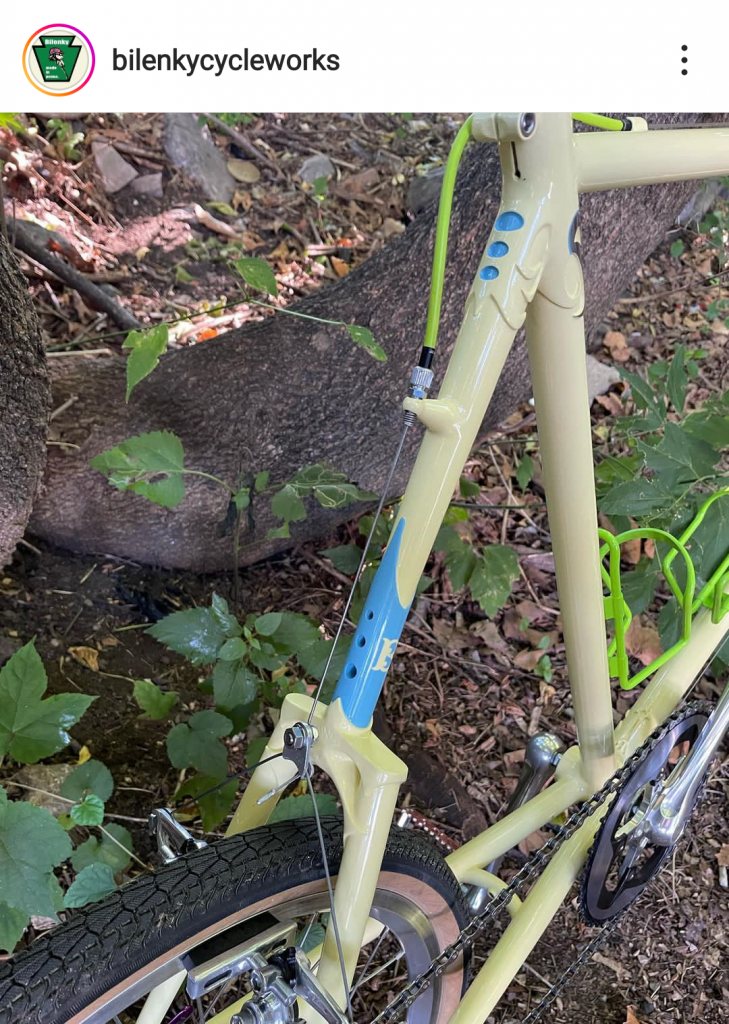 Пише, що готує велосипед до якогось байкшоу. Аби зробив передню вилку як задню, було б краще. Геть не зрозумілі манєтки на нижній трубі, до них дуже далеко тягнутися, набагато далі ніж на шосерах.
