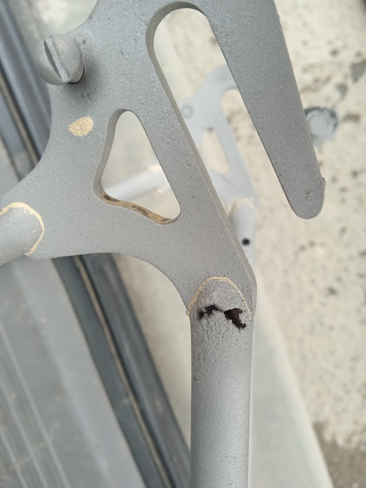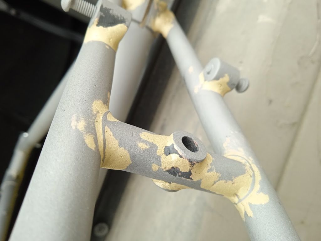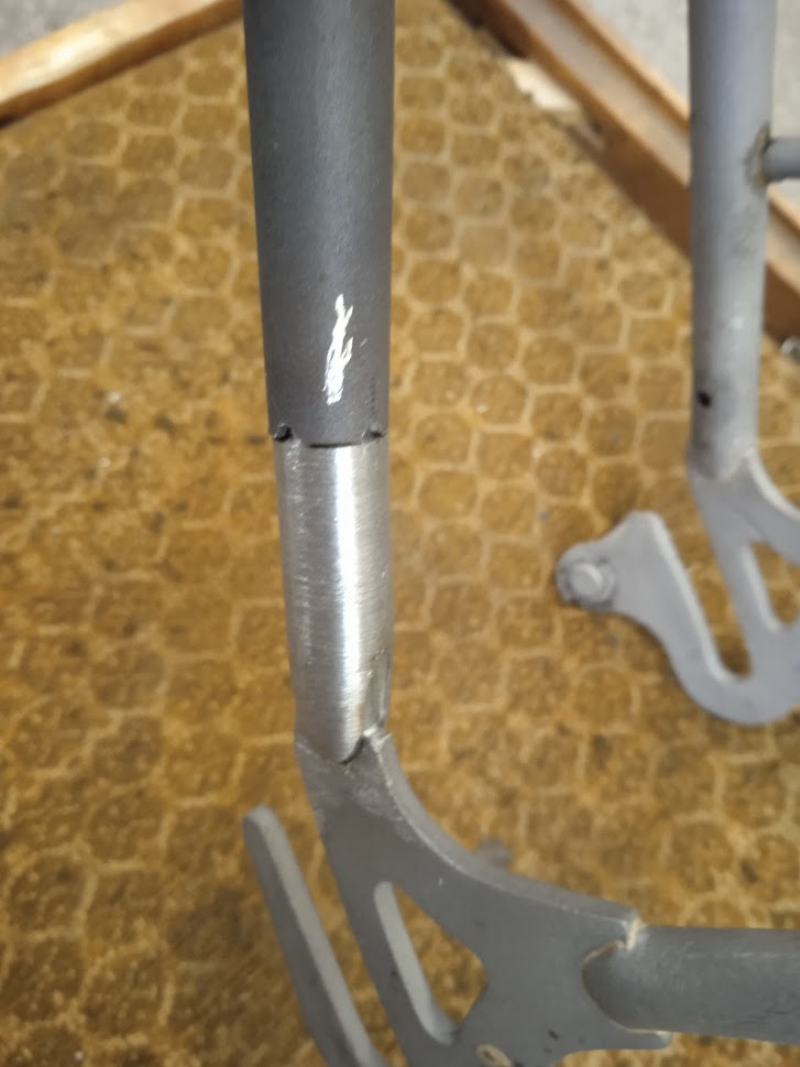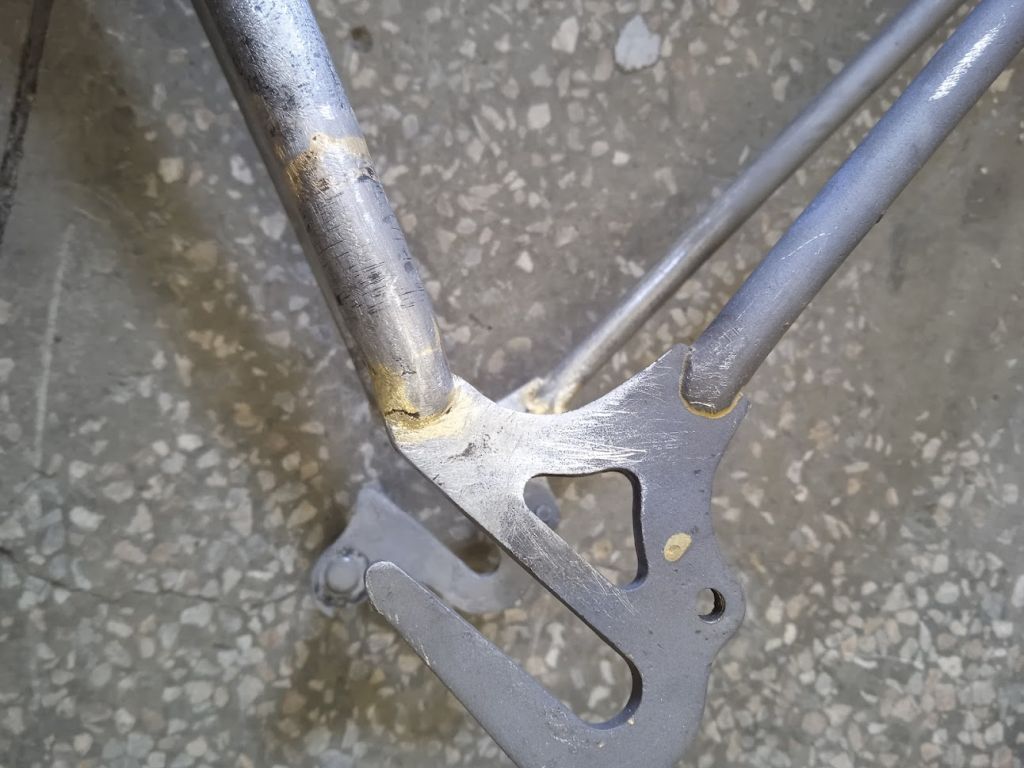 Рама оказалась очень уставшей от долгой жизни и потребовала обширного ремонта почти везде. Были выпрямлены дропы,  восстановлена резьба в петухе, заменен гнилой наконечник левого нижнего пера( репетиция  перед восстановлением Примы img/ag ), восстановлен задний мостик и припаяны бонки. Ну и выпрямлена геометрия.
