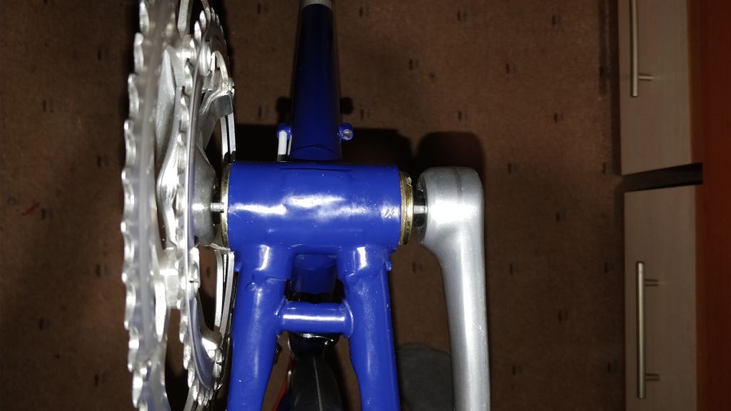 Зазор между чашкой каретки и правым шатуном составил 3мм. Слева чуть больше, но не критично (да, забыл накрутить на левую чашку контрагайку).