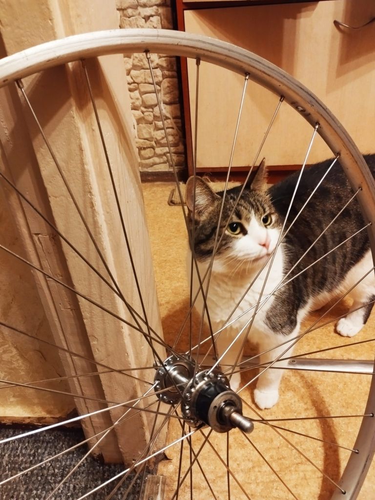 в переборе под контролем (контролёр очень любит играть со  спицами) все как то очень легко собралось .3х на правой и 2х на левой стороне