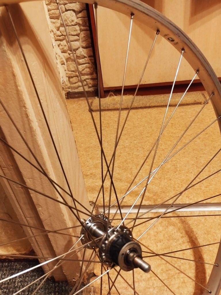 Для заднего колеса с переключателем важно когда тянущие проходят изнутри. При натяжении они распрямляются внутрь колеса и не задевают клетку переклюка. Заднее и переднее с втулочным тормозом по хорошему делать зеркально. Но прям критично это не влияет.