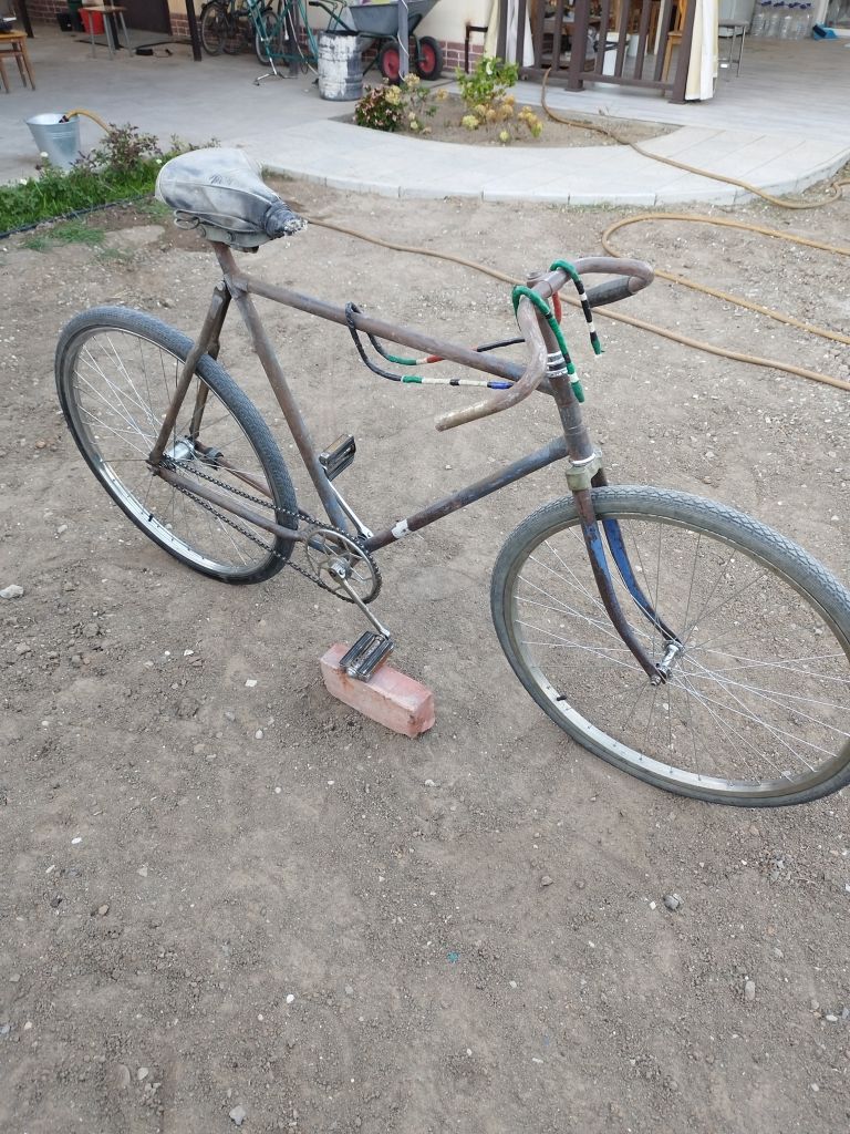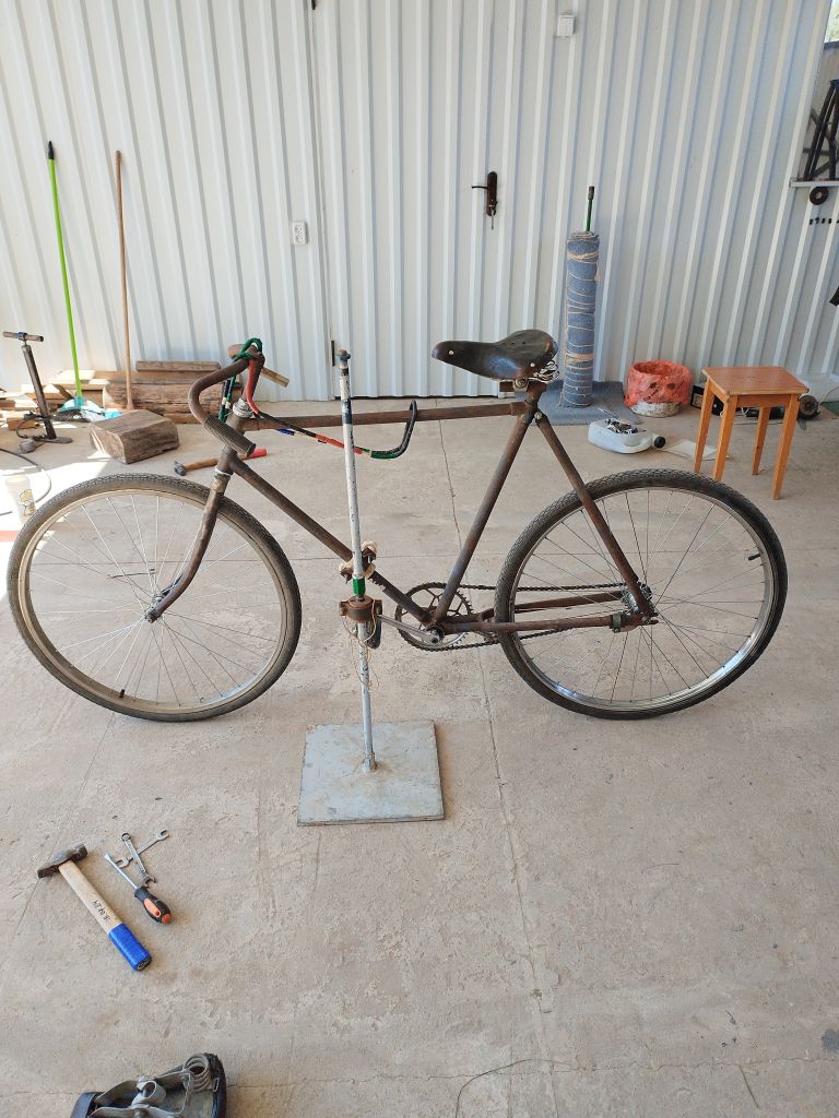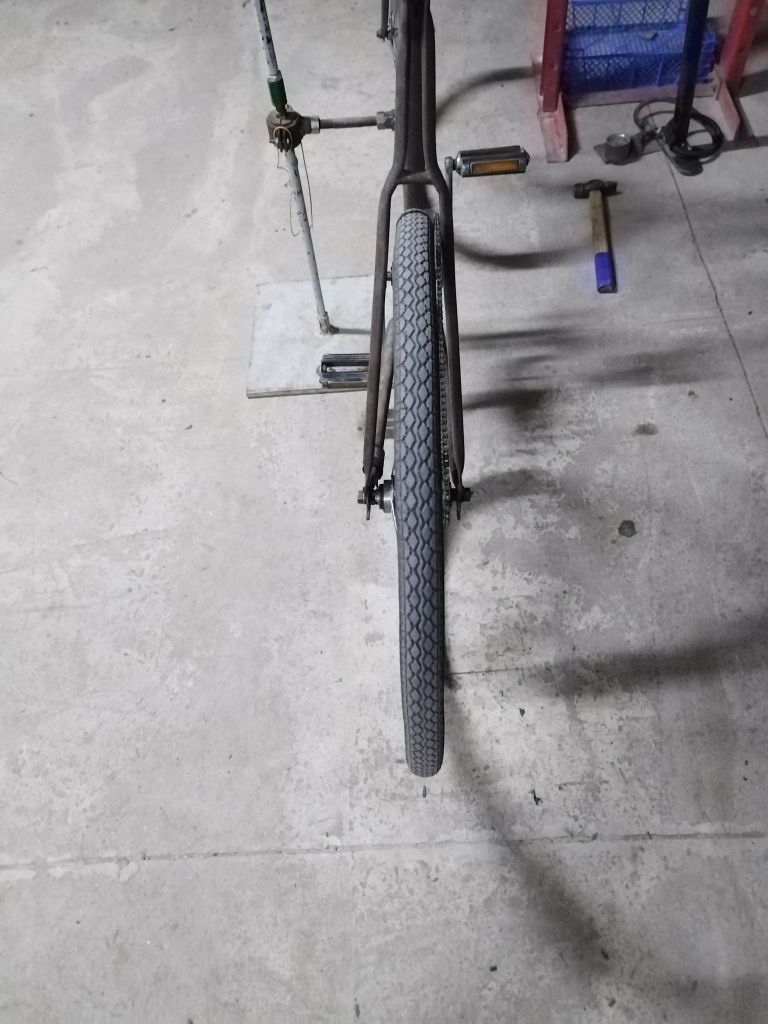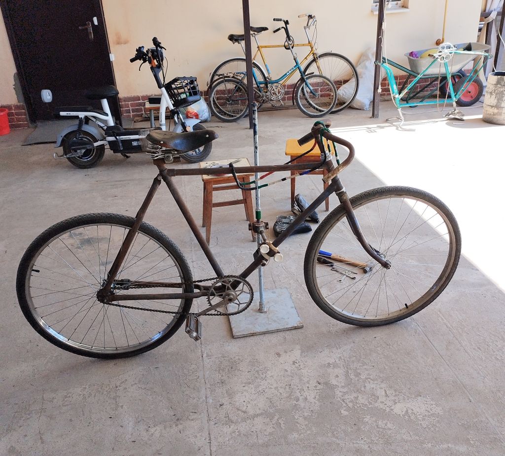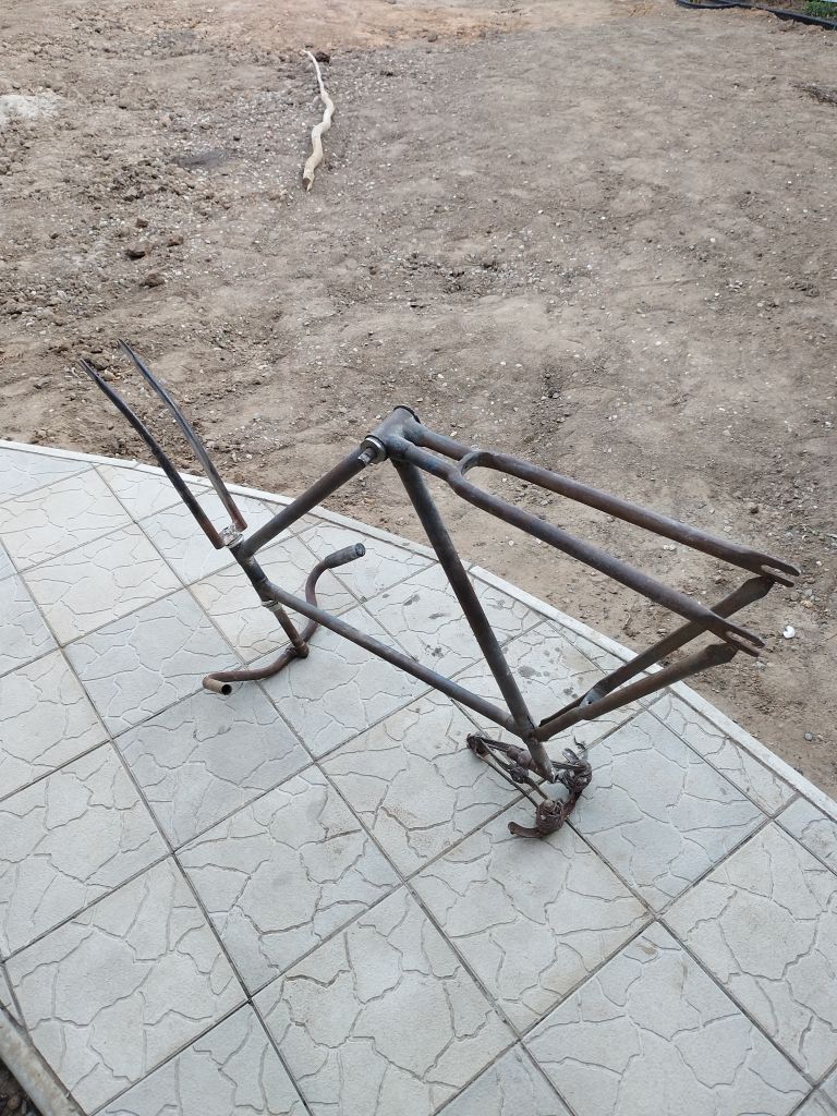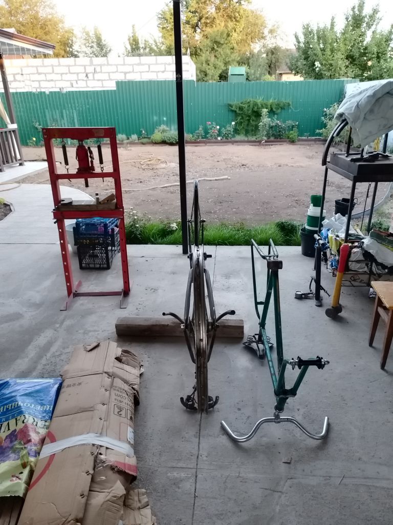 Все это время рама висела в гараже, потом на чердаке. Настал творческий интерес. Поставить её на колёса, и поехать и испытать как оно едет.