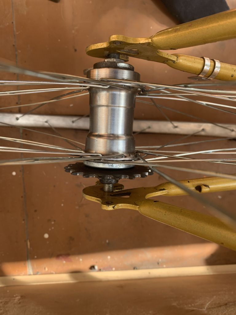 В общем перебрал втулку торпедо, нашел звезду на 19 и собрал в колесо с новыми спицами. Начал примерять на велосипед и вижу слишком большие зазоры по перьям. Как быть в данном случае? Просто зажать гайками, пока они сами не стянутся или нужно еще добавлять контргайки, втулки?