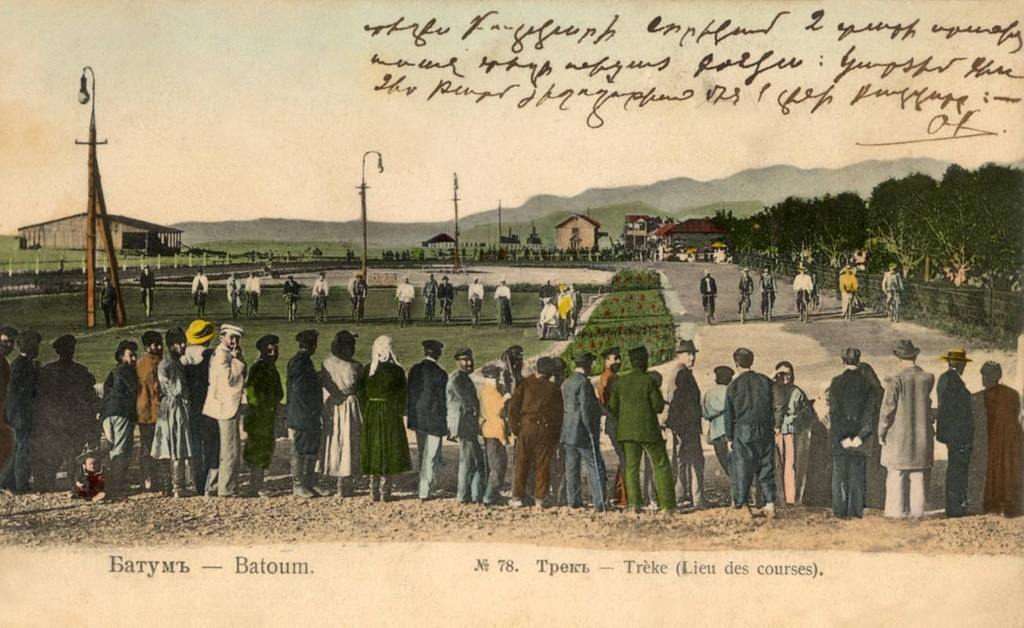 В песке или опилках каких-то. Он выступал на ипподромах, в основном. Причём на всём — и на велосипеде, и на мотоцикле, и на аэроплане — да, Уточкин — один из пионеров авиации и технических видов спорта Российской империи ещё.