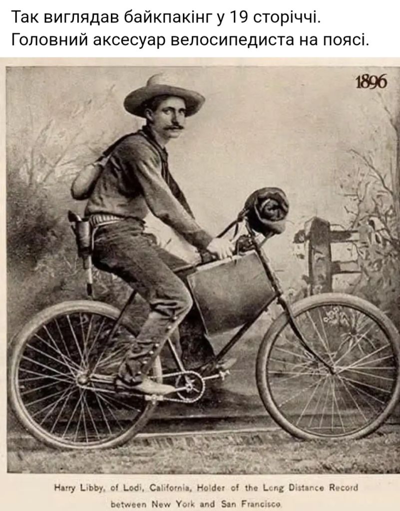 Дык, судя по надписи снизу фото, данный велосипедист является обладателем рекорда, проехав от Нью-Йорка до Сан-Франциско.