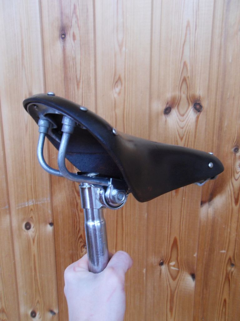 Красиво седло получилось, но совсем по-хорошему "новое" седло не должно быть прогнутым — верхняя часть должна быть ровной "под линейку". У меня какой-то воск для обуви (Kiwi вроде) растворил морилку на ксилоловой основе, которой было окрашено седло. Это так, к сведению. Вижу на заготовке наоборот установленные ручки тормоза (передний справа), спицовку без шайб под ниппелями (или их плохо видно) и отсутствие фигурных шайб под винтом заднего тормоза.