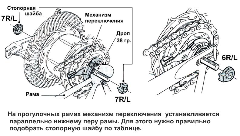Александр IS, слева должна быть фигурная шайба с отогнутой пластиной, которая заходит в прорезь дропа. Обычно эта шайба ярко жёлтая. Но в каталогах встречаются и шайбы другого цвета, и, соответственно, исполнения для разных видов дропов. На рисунке, взятом для иллюстрации исключительно, эти шайбы помечены индексом R/L