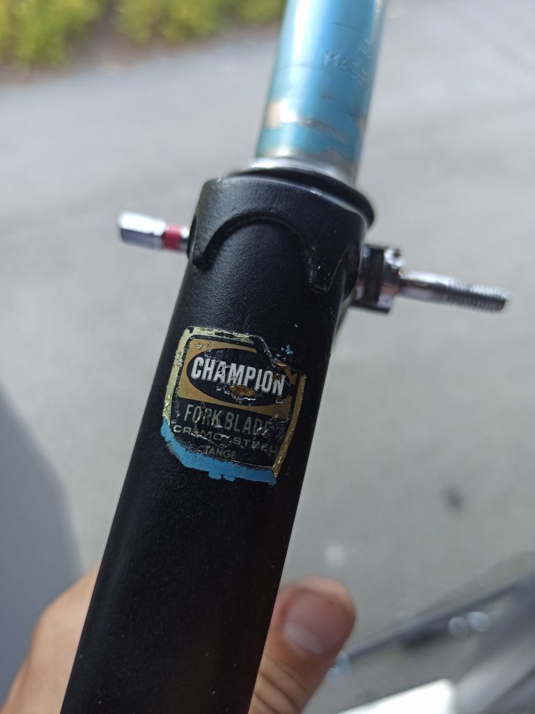 Стал разбирать раму и наткнулся на пару закрашенных наклеек. На второй золотой написано champion No2 crome molybden steel butted tube и что-то ещё.