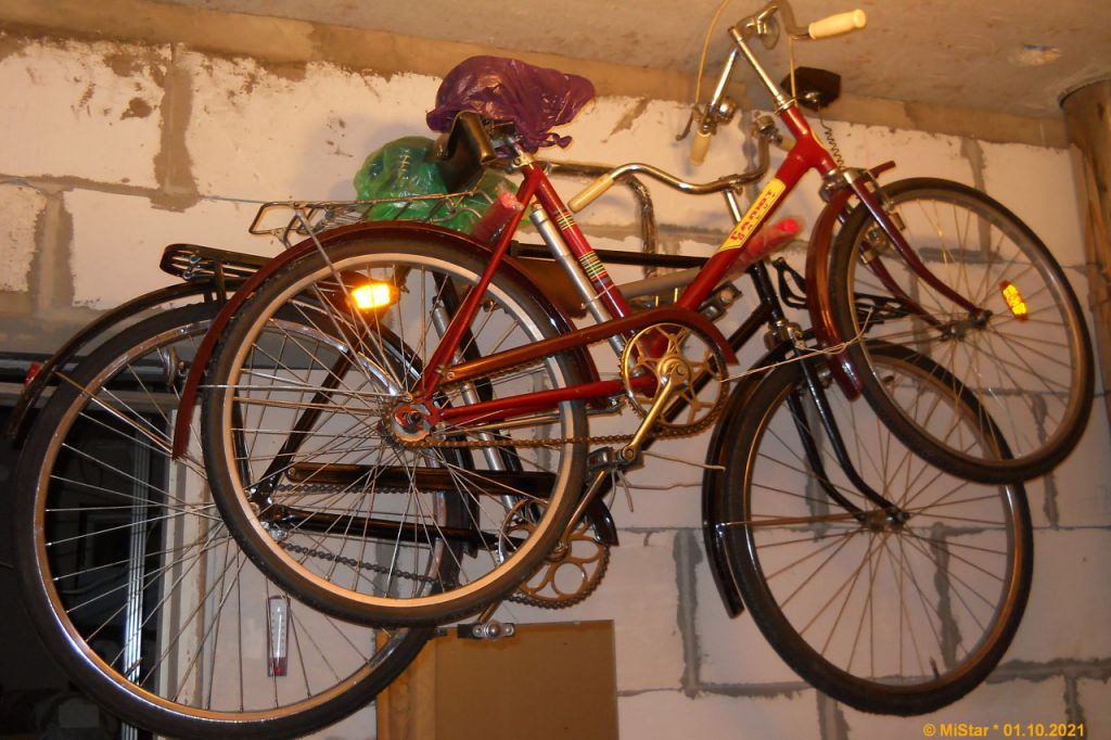 Старые покрышки и камеры, снятые с Украины, были отмыты, пересыпаны тальком, и повешены "в резерв". Если с передней Воронежской Л-183 к этому моменту уже все было ясно, то демонтированная сегодня вечером с заднего колеса Л-183 ЛШЗ 1977г, как и ожидалось имела внутри вполне современную камеру Омского шинного завода со штампом ОТК датированным 05.2000. Возможно, что это была последняя попытка эксплуатации этого велосипеда в его прошлой жизни, до того, как он попал в кучу хлама в электрощитовой. База отдыха прекратила существование по документам в 2002 году, так что возможно, в последнем сезоне им как раз и попытались воспользоваться, а до этого он мог хранится в одном из помещений, куда долгие годы не ступала нога человека и был случайно обнаружен при подготовке к закрытию.