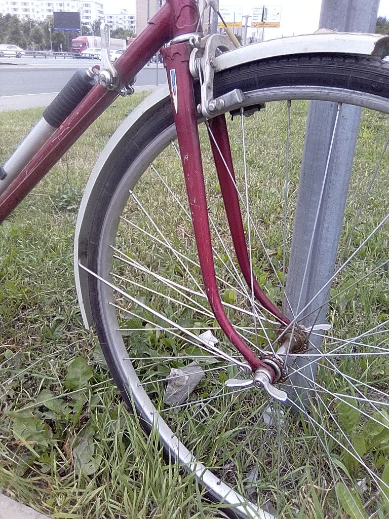 Неаккуратно двинув рукой, я согнул ему раму. А неудачно двинув ногой, я согнул ему вилку. Вот блин, как бы он гармошкой не сложился, если на него сяду и начну кашлять при торможении!!!