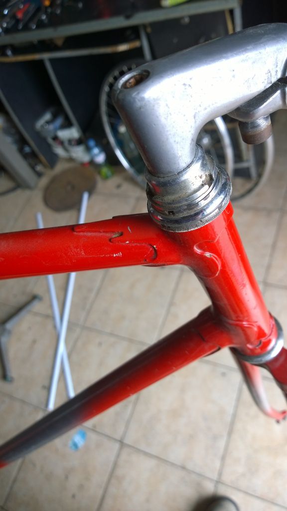 3 — Что за рама? На дропах только серийный номер а год выпуска стерт. Она более массивная чем рама спецзаказа у меня. Штырь стоит 25мм. Внимательно проверил место зажима подседела, вроде он не слишком зажатый. То есть труба наверняка 25мм. Есть минимальные вмятины на вилке. Чашки вроде от хвз стоят, вынос незнаю от какого.