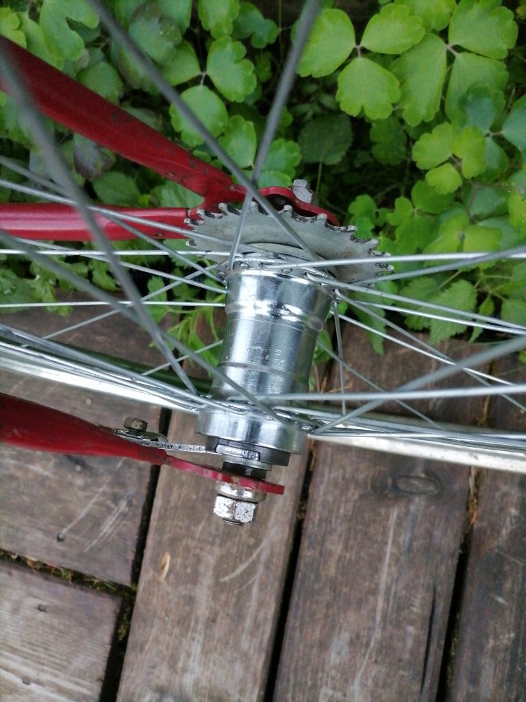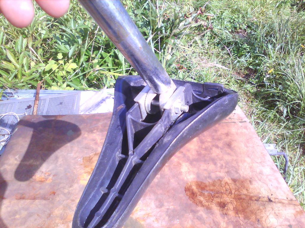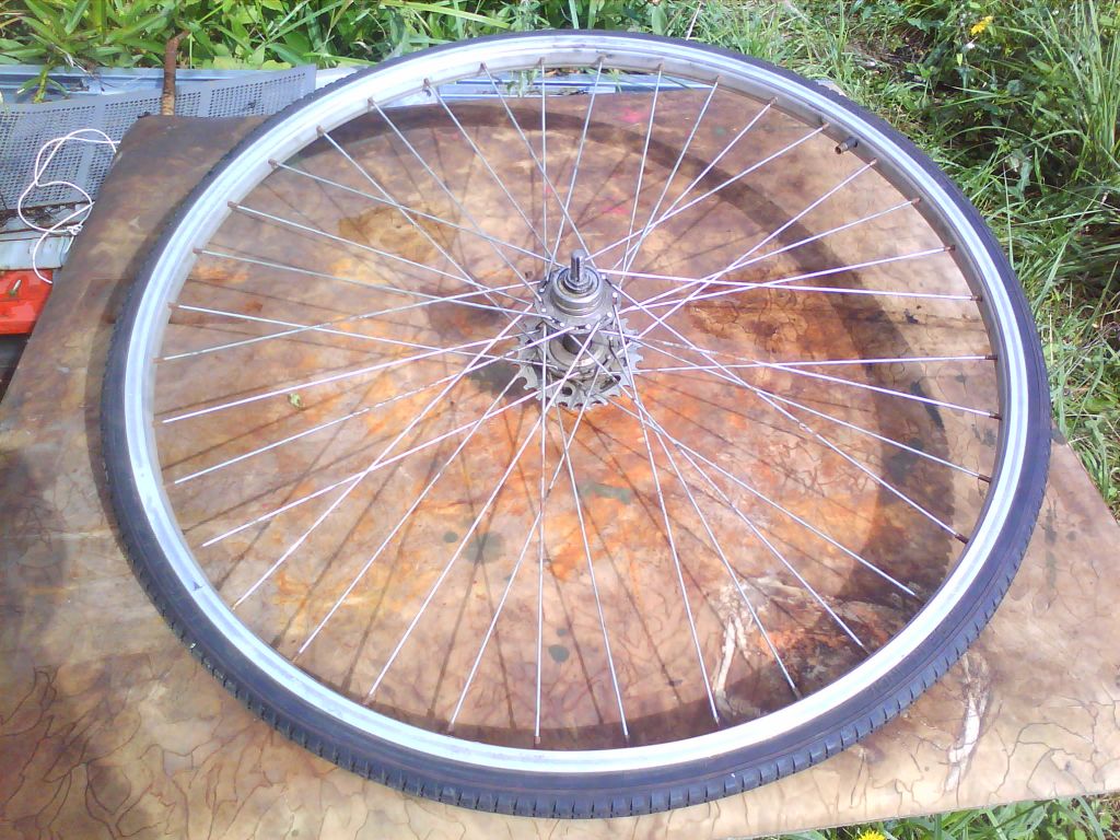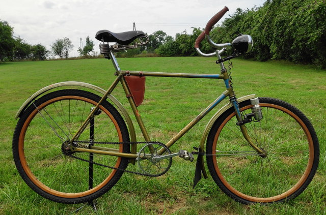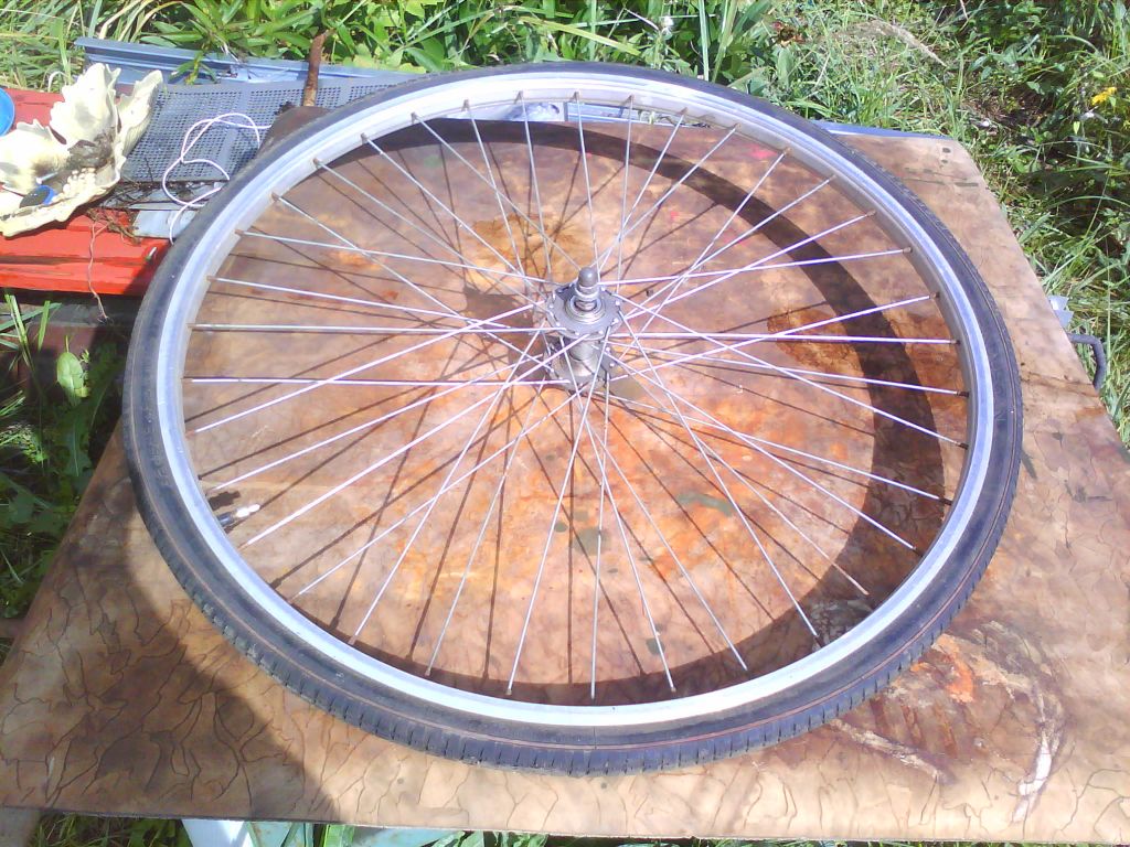 Дмитрий, нацепляли уже в наше время шопопало от убитого недорогого "велосипеда из Европы" — сити-байка. Индийские шины с красной полоской купили на базаре.