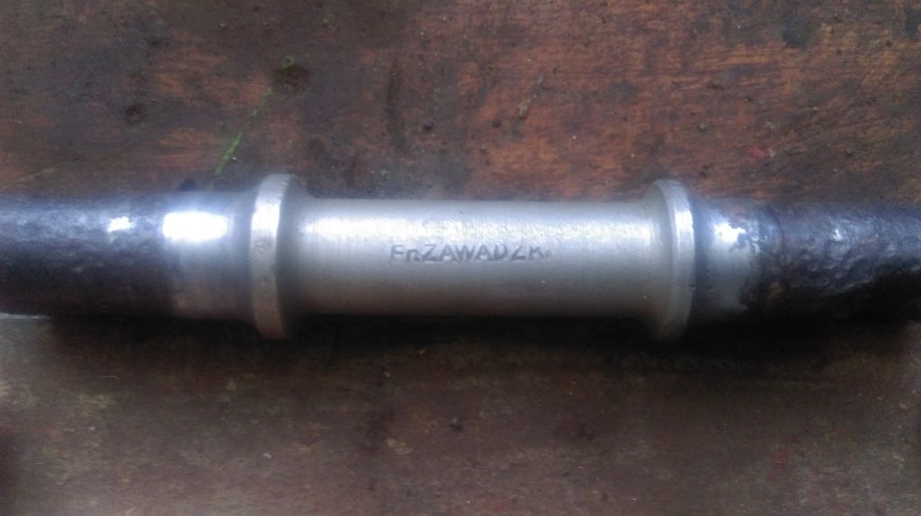 хорошої усім наділі. Декілька постів тому задавав питання щодо велодеталей( одного велосипеда в розібраному стані), які попали до мене. Сам задав питання, сам і відповідаю. В переліку компонентів даного велосипеда був кареточний вузол. в суботу після багатьох днів "відкисання" в дизпаливі вдалося його розібрати. Напис на валу -Fn. ZAWADZKI.