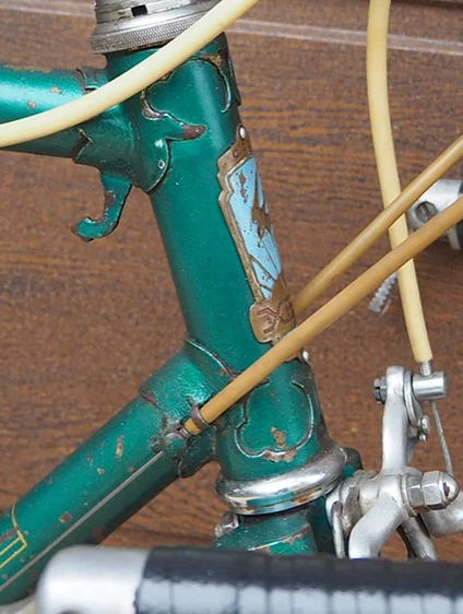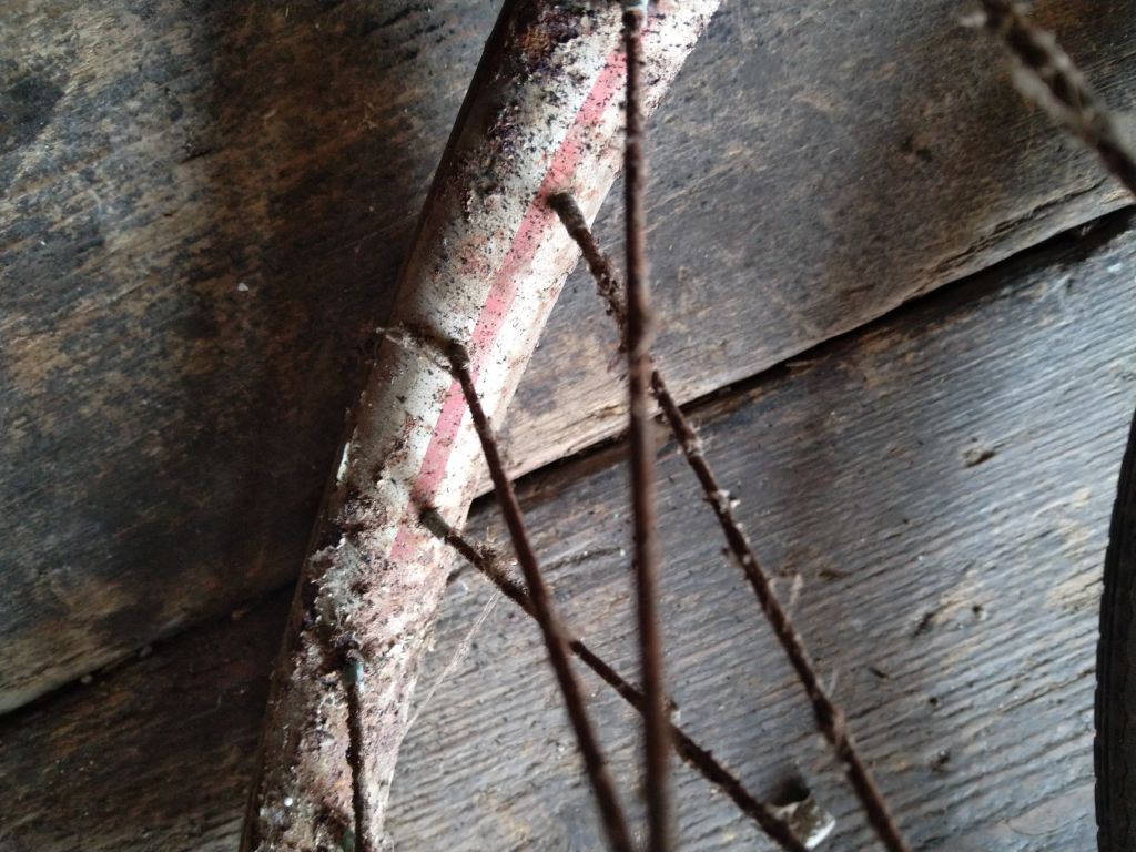 Носорев Тарас, Носорев Тарас, Носорев Тарас, Декаль родная, хвз точно, узлы похожие, под нынешней краской местами проглядывает родная, тоже красная, с родными цировками. Руль один в один чемпион, монетка как у в 551...Правый дроп вварен позднее весьма грубо. Он точно от в 551. Я проверил. Года правда пока не обнаружил...Велик явно хорошо эксплуатировали, раз лопнула верхняя труба и дроп заменен...По сути серьезная разница только в узлах рулевой трубы, родном левом дропе, и мостике. Подседелный узел похож на 551 но у того прямой нижний срез, здесь косой...Вообще что он попал в наш город, это загадка, серьезной велосекции тут никогда не было. На завод он попал скорее всего случайно...