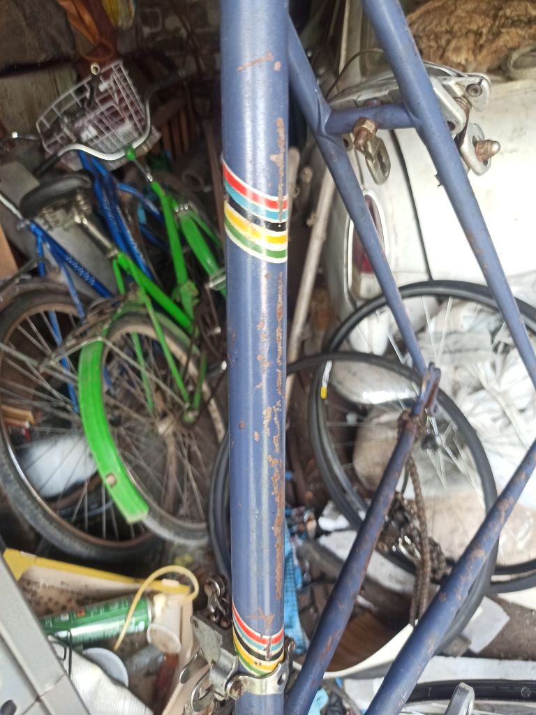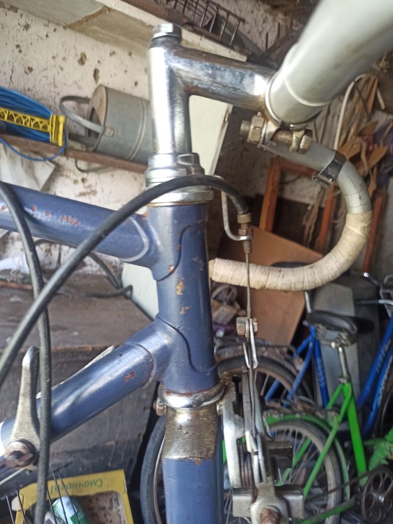 Это рама Старт-Шоссе В-555 1973 года. Мелочи, которые мы обсуждали с самого начала, показали, скорее всего, заводское происхождение такой отделки. Вероятно, заказана спортивным обществом, как призовая для подростков (другие версии не выдерживают критики). За время жизни, почти все родные детали и узлы заменены — колёса на Турист, система — похоже, на спецзаказ, и т.д. Вынос, кстати, редкий родной — специально короткий подростковый.