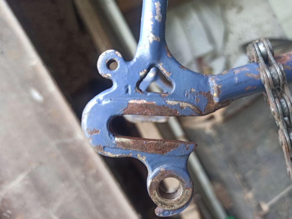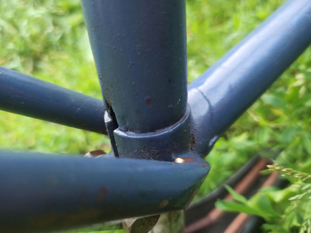 Возможно сильно повреждённый (чем? переехали?) СЗ восстановили с помощью "старой" шоссейной рамы.