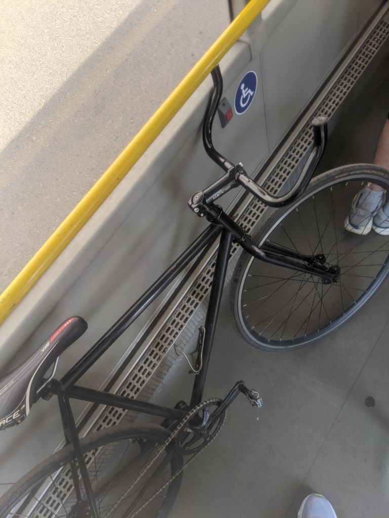 Вячеслав, дорожник низкого уровня (сваренная встык рама, плющенные концы перьев вилки в качестве дропов, штампованная корона вилки, штампованный плоский нижний мостик и т. д.)