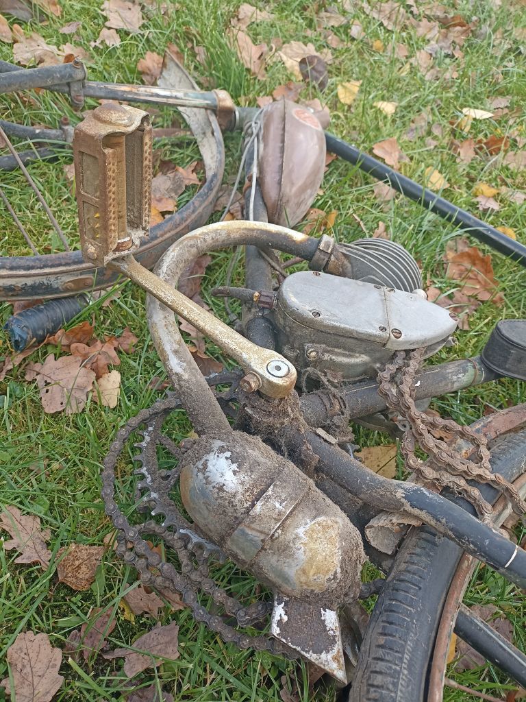 Попался такой велосипед. Мопедная часть, очевидно, установлена с мопеда В-902, с ней всё понятно.