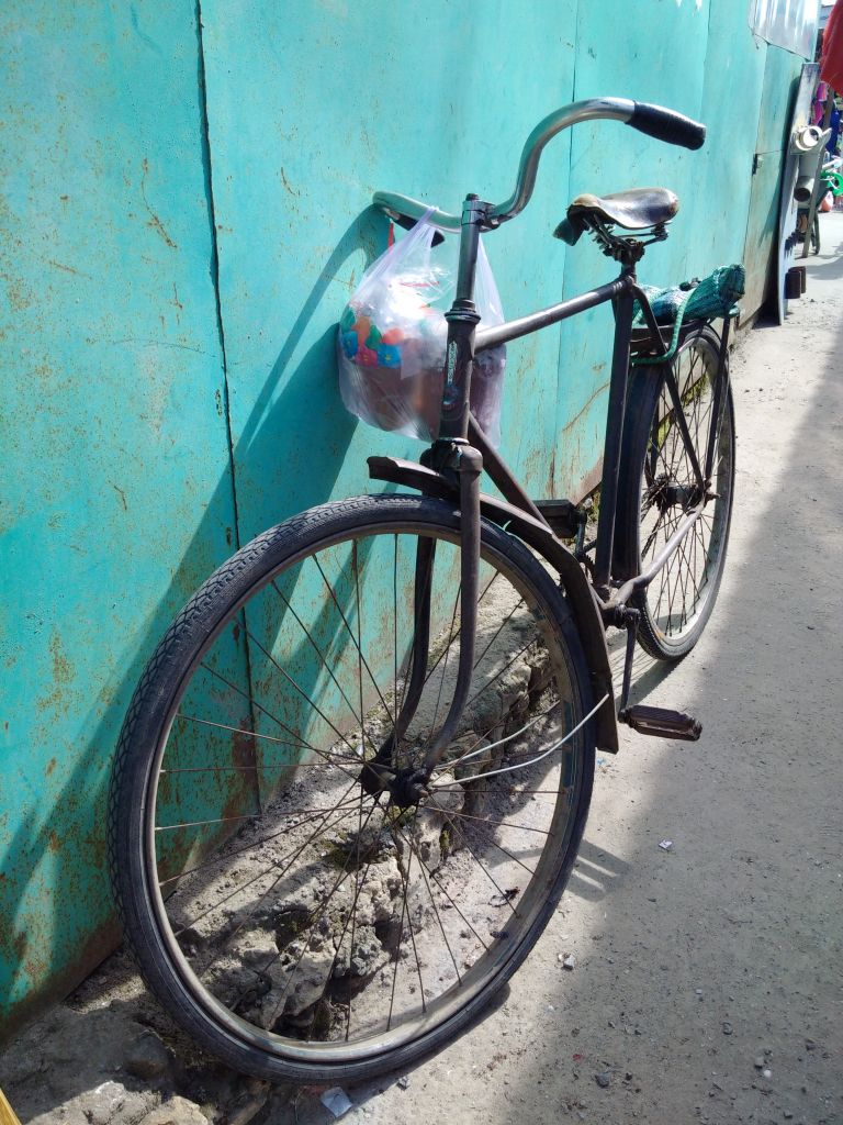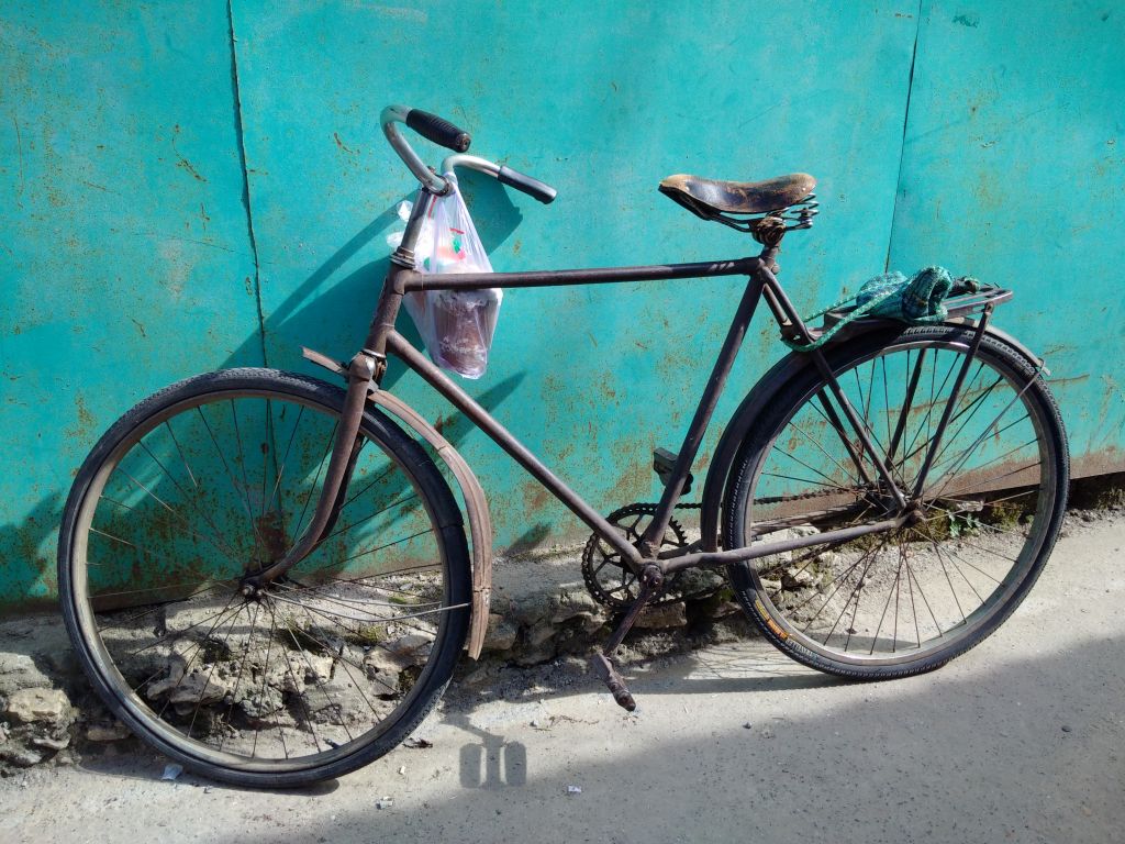 В своем родном городке повстречал незнакомого дедушку с велосипедом.
