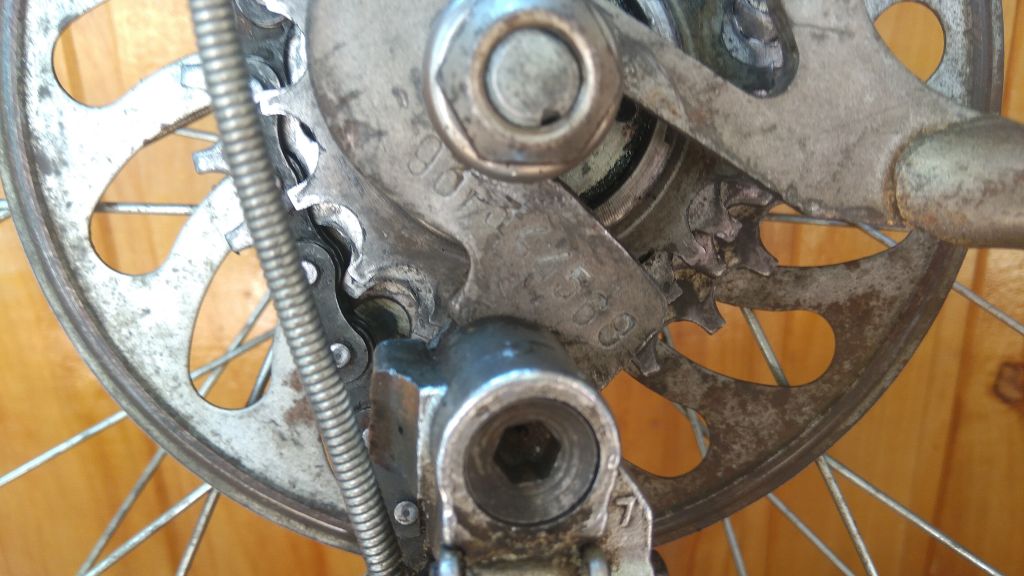 3. Сзади был блок из четырёх звёзд и пластиковая защита цепи. Как он выразился, «три звезды пропорционально увеличивались в размерах, а последняя была огромная, что-то под- или за тридцать зубьев».
