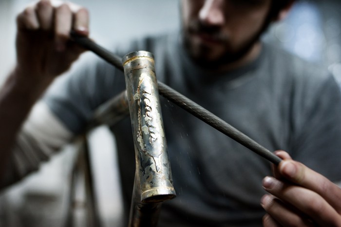 Это Ян Саттон — Икарус Фреймс https://cargocollective.com/icarusframes (Мне посчастливилось лично одну его работу в руках подержать — тот, что чёрный весь. В руках-то поднимал, но покатать попросить постеснялся — эти рамы под две штуки баксов стОят, не считая остальной комплектухи. Это просто... Фотки вообще ничего не передают.)