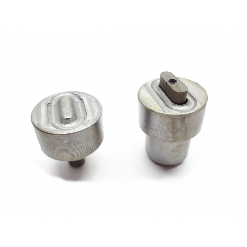 Для соединение двух кусков кожи абсолютно не подходит из-за повреждения самого люверса. Для этих целей используются спецматрицы вот такого типа, как на изображении ниже. Причем для каждого диаметра и формы свой набор, где люверс не разрезается/разбивается а загибается. Хотя, если люверс го..оно, то он может и порваться как на Вашем изображении, и тогда приходится переустанавливать.