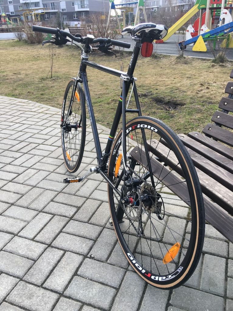 Из-за обвеса велосипед приобрел некоторый лишний вес, он тяжеловат. Впечатление сглаживают отличные шоссейные колеса, но по общему впечатлению это явно не шоссер.