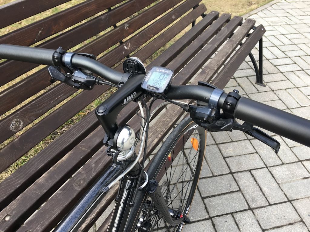 Первое впечатление, велосипед просит прибавить, и отлично отзывается разгоном и накатом, сказывается шоссейный характер. К сожалению, не догадался обнулить показания компьютера, который был на руле, потому нет точных данных по скорости и дистанции, по ровным участкам шел 30-40 км/час, с небольшой горочки под 45 км/час. Моя тренированность, точнее, ее отсутствие, явная причина таких не самых лучших показателей, думаю, велосипед сможет показать больше в опытных руках.