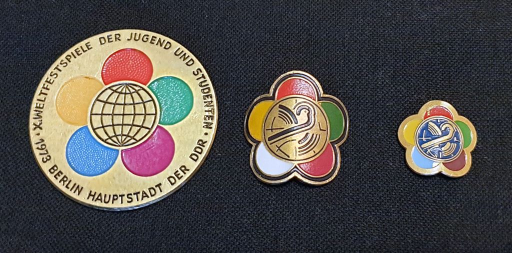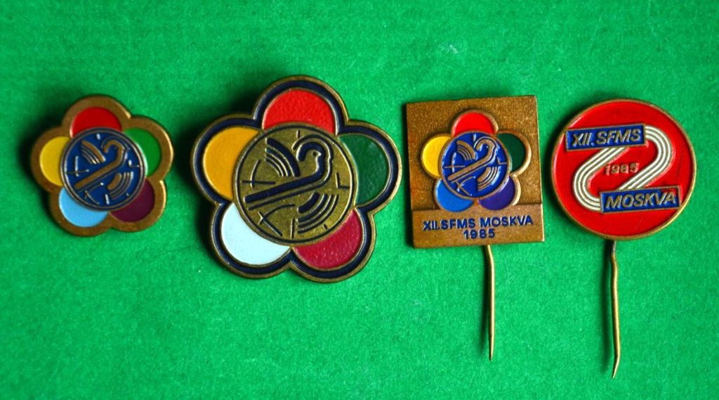 Собственно самой декали «ромашки» XII Всемирного фестиваля молодёжи и студентов (WFYS), проходившего с 27 июля по 3 августа 1985 года в Москве, на данной конкретной раме не было, но мы решили восстановить историческую справедливость и даже сделали эмблему на рулевой стакан из фестивального значка. В наличии был лишь купленный в Берлине значок Фестиваля в ГДР 1973 года, но эту проблему мы решили покупкой небольшой коллекцией по данной теме