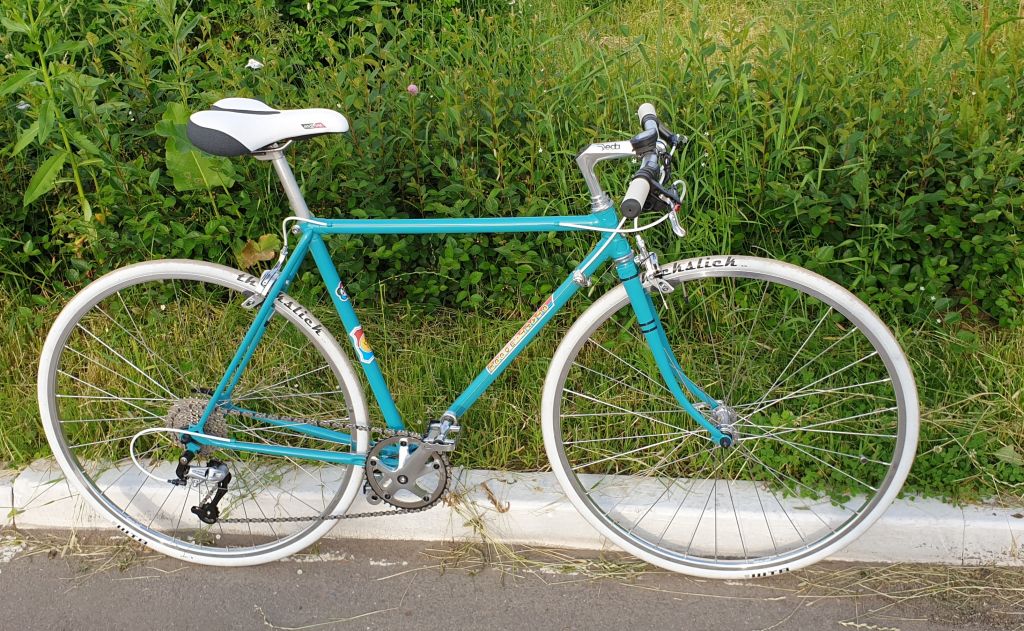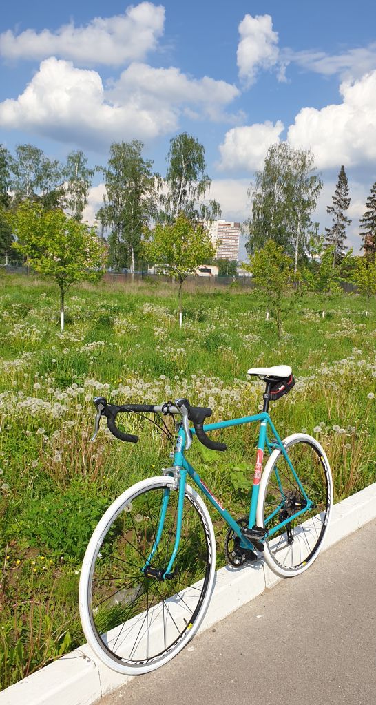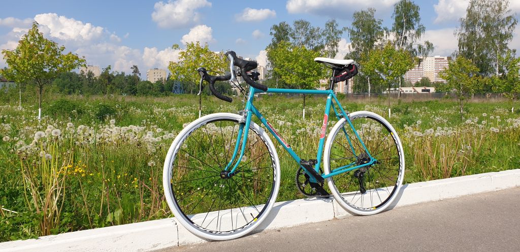 Подвернулась пара новых симпатичных колёс Mavic Ksyrium Equipe (вес пары без покрышек 1690 грамм, на промах, плоские спицы) по прошлогодней цене, купленных другом на распродаже. С этого момента безымянный К1 выпуска 1979 года гордо именуется «Олимпийцем».