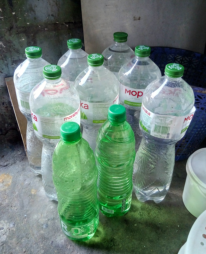 И ещё... пора подставлять миски и собирать чистейшую воду. Тестер TDS-метр показал всего 25 молей наличия в дождевой воде примесей в то время, как наша домашняя из вода колодца — 1400 ед., и пройдя фильтры очистки обратного осмоса становится 50-120 ед, что считается неплохим результатом (наглядно видно на чайнике — накипи нет вообще). Так что дождевая вода — дистиллированная! Мы специально покупали дистилированнную воду в магазине и тестер показывал около 30 ед, но никак не 0. Вода дождевая мне нужна для экспериментов, и для полива цветочкоф  img/ax