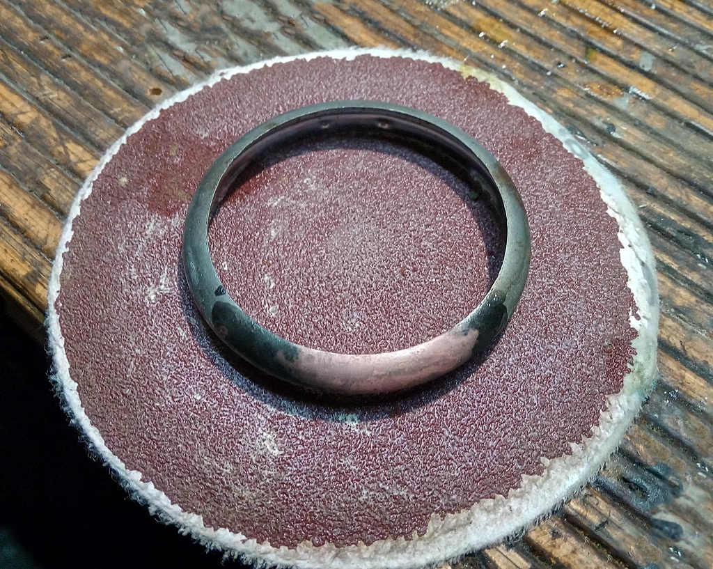 По мокрому шлифовал проволочным кругом и снова мазал. В результате получилось вот так...