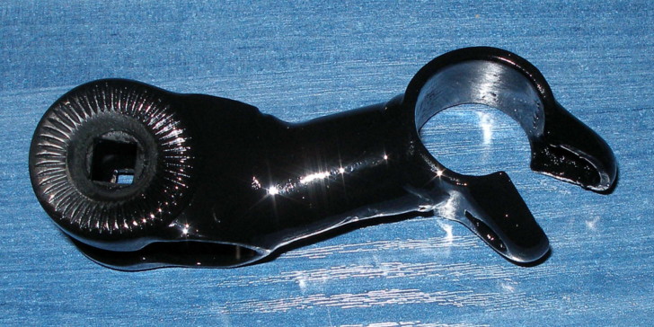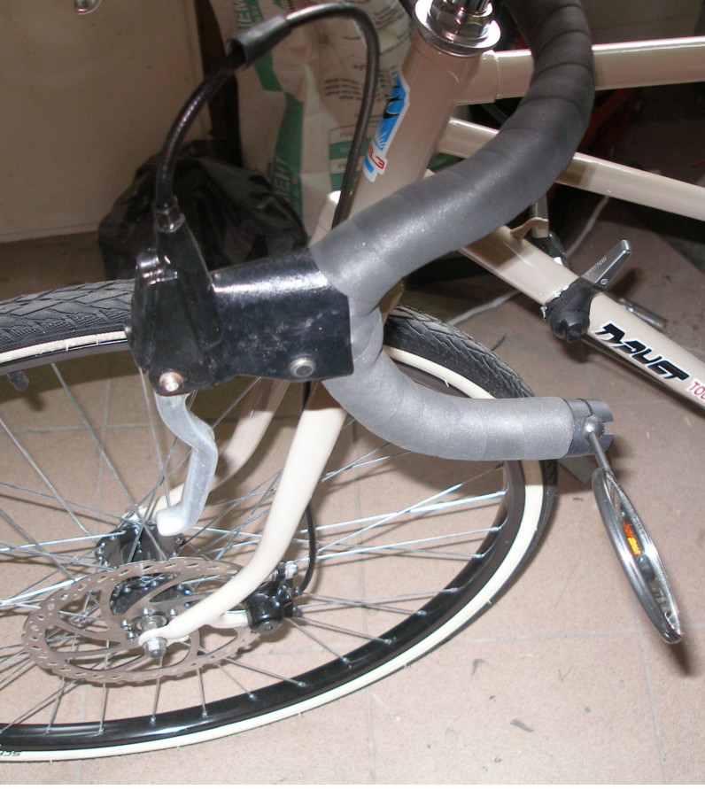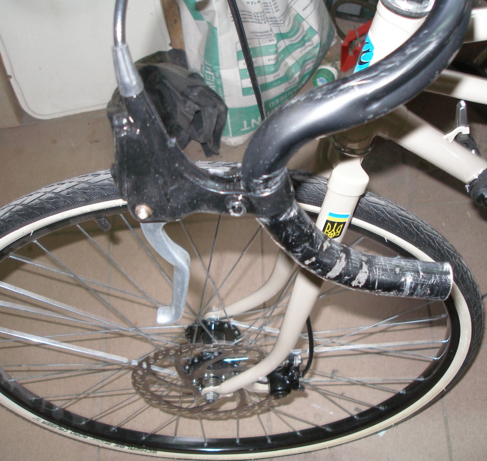 Эти надставочки кроме того что дали возможность использовать "хват за слоны", так ещё и сделали ручки пожоще, ато при нажатии вся ручка на хомуте прогибалась (выступающий хвостик у надставки рискнул закрепить заклёпкой 3мм к рулю, хотя можно было бы и бандаж проволокой наложить) .