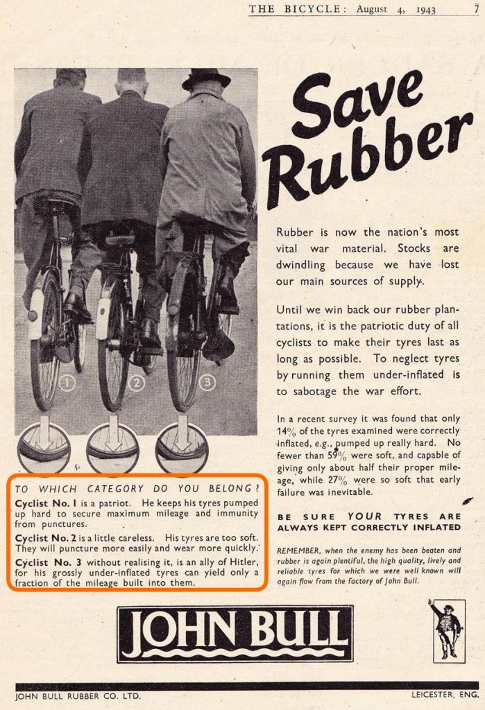 Британский журнал "Велосипед" за 1943 год, статья "Сохранить резину":