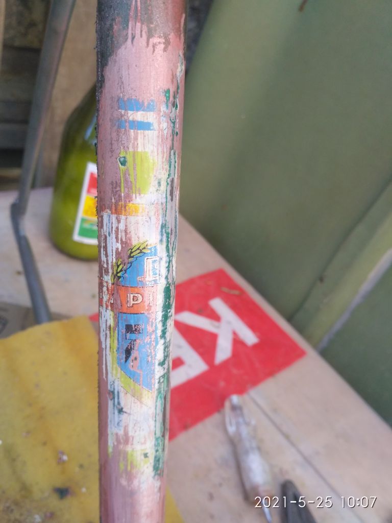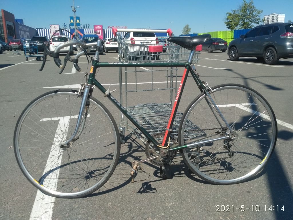 Переді мною, очевидно, шосейник, 69 року, про марку я вагався, спочатку показалося що переді мною в-552. присутнє сідло пластикове хвз, хромована вилка і задні пера,крючки насоса вже попиляні, рама задута з балона не першим шаром явно, мала купу подряпин. Система 51/48, перекидка пізня і роздовбана, трещітка шимана 6зірок, ободи 622 подвійні , посадочне 14 мм, покришки Deestone 20-622 в задовільному стані. ну і комплект рідних коліс з одною новою на вигляд трубкою. я був в принципі задоволений таким приходом.