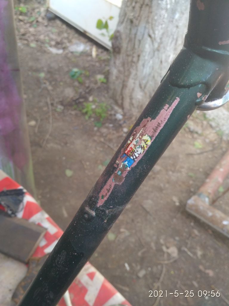 Пройшовся по геометрії рами, пера на 7 мм вправо, давай рівнять, егеее, це не дорожники правити, прийшлось брати брусок поширше і важіль подовше, пружиниста виявилася стартоновська рама , вивів майже в нулі. зняв стару фарбу, і пофарбував балоном