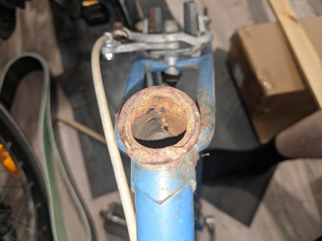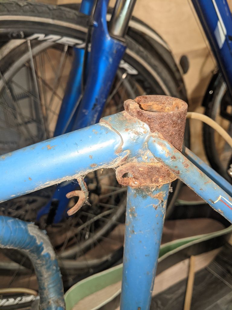 проблема в подседельном узле. Полагаю что когда-то давно отвалилось ухо под болт и умельцы создали это. Приварено двумя точками к кромке трубы, так что есть шанс что узел внутри еще жив.