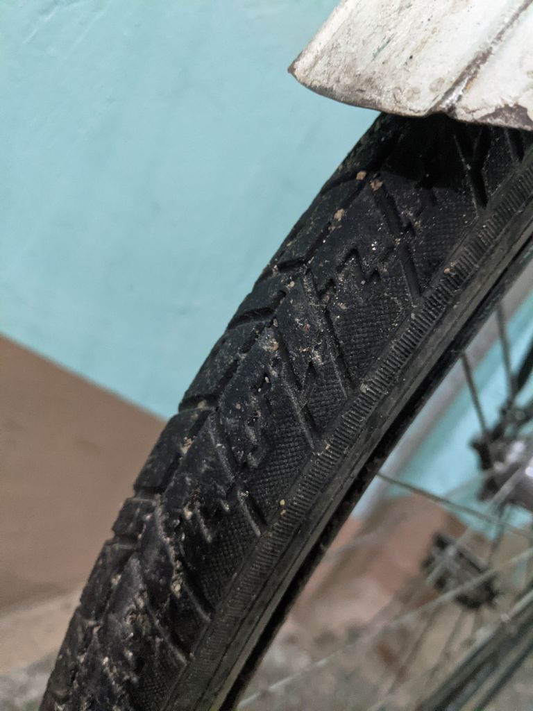 покрышка да, кривенькая, но тем не менее на асфальте едет лучше ёлки