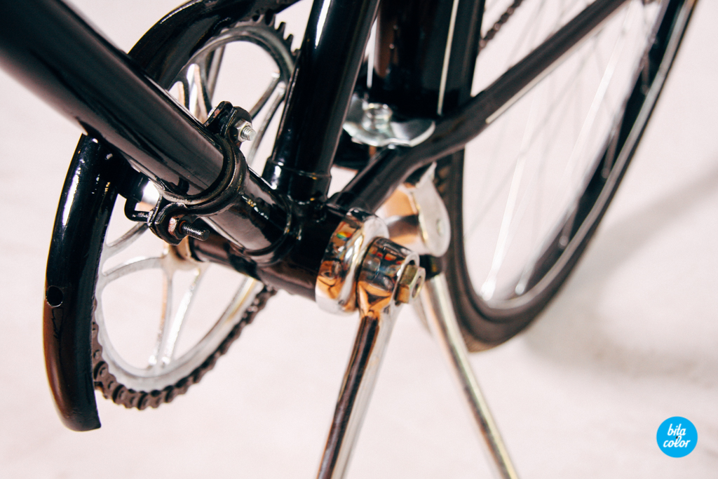 Паяный фреймсет открыто показывает качество производства рам Yasujiro. Вместо покраски рама покрыта лаком, обнажая побежалости от нагрева в местах пайки.
