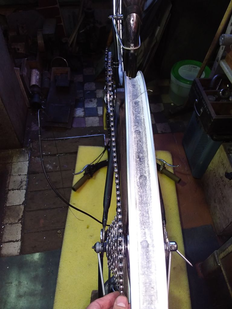 После недели жесткого садомазо с трансмиссией Франка я выяснил что нелинейный выход троса у шифтеров это не заговор буржуев: причина в ноге, это у нее нелинейный ход. Одна и та же вытяжка троса в начале хода и в середине дает разное перемещение цепи. Соответственно если нужно обойтись межзвездными проставками одной толщины — остается только мудрить с шифтером.