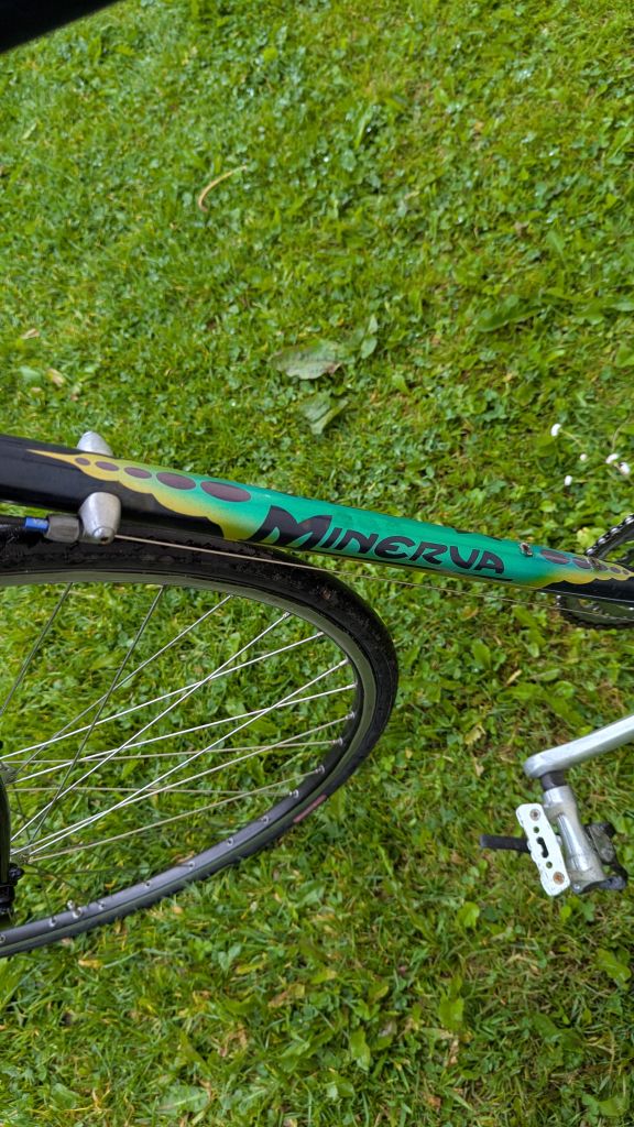 Заинтересовался конечно что рама от велосипеда тоже имеется и колеса в придачу. При общении выяснилось что этот велосипед марки Raleigh, но на котором имеется и другой знак (какой? Не понял) номер рамы отсутствует ввиду не серийности и по заверению продавца велосипед был подарен работнику по фамилии McCann на его 25 летний юбилей роботы на заводе Raleigh в Ноттингеме. Он пытался найти родственников или свидетельства этого события но безуспешно ( сам работник вероятно умер.т.к это было в 60-70х годах, по моему мнению точно в 60 х )