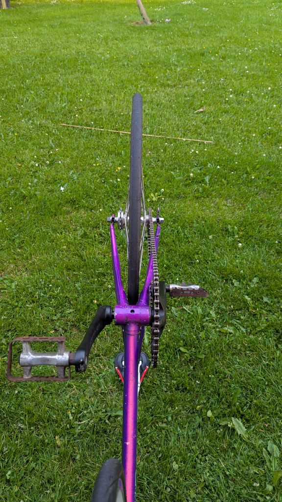 Пришлось попрощаться с бельгийцем, нет места для хранения нескольких велосипедов... Зато появилась возможность заняться "цыганкой" . Набил смазкой и поставил новый подшипники в колеса, за часа три собрал из того что было на быструю руку чтобы посмотреть хоть что задумал..