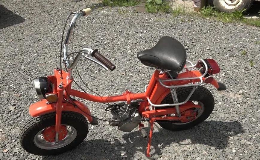 А заводился моторчик после недельного простоя в учебное время, если пробежать рядом несколько метров. При ежедневном катании летом достаточно было сидя пару раз оттолкнуться ногами. Если он не остыл, то достаточно было толкнуться ногами один раз, "бросить" сцепление — и мопед ехал. Ну и нафига ему педали?