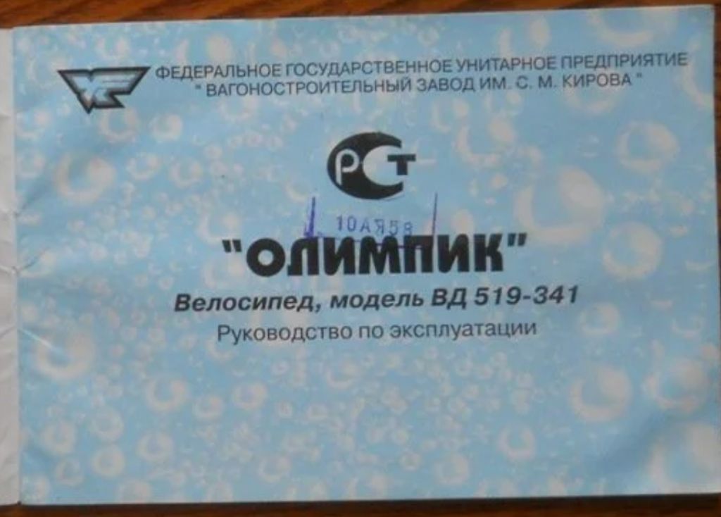 На Вашем фото модель 519-441, а на моем 519-421 и велосипед 90 г.в. Вопрос тогда интересный, какого года был тот, от которого документ на Вашем фото.