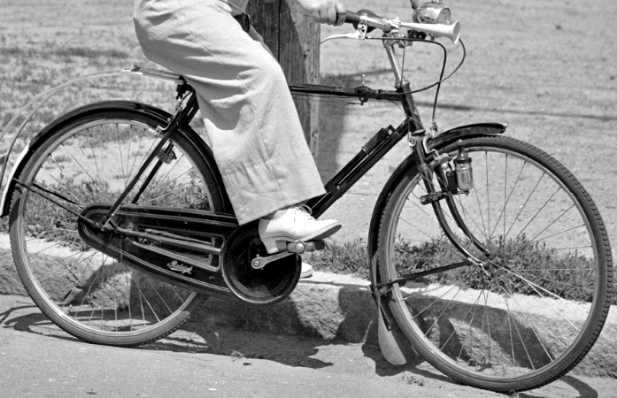 Велосипеды были фиксами, в большинстве своём,  и с этой подножки стартовали с забросом ноги — с педали на фиксе так не стартанёшь.