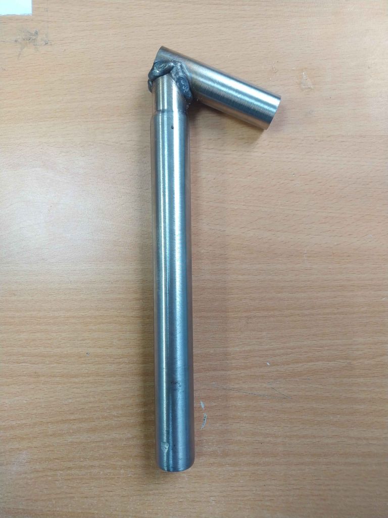kisa, из какой-то нержавейки. Основной штырь проездил со мной всю зиму, ничего ему не произошло. Красить не буду. Выглядит в цвет серых советских подседелов, позже ещё увидите)