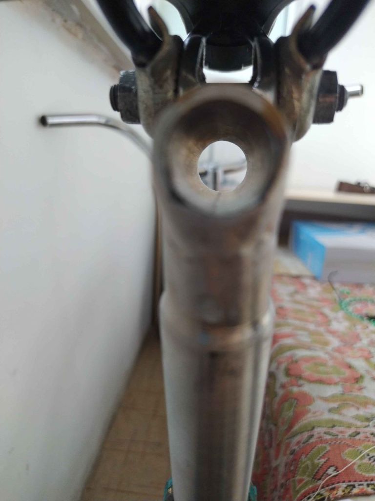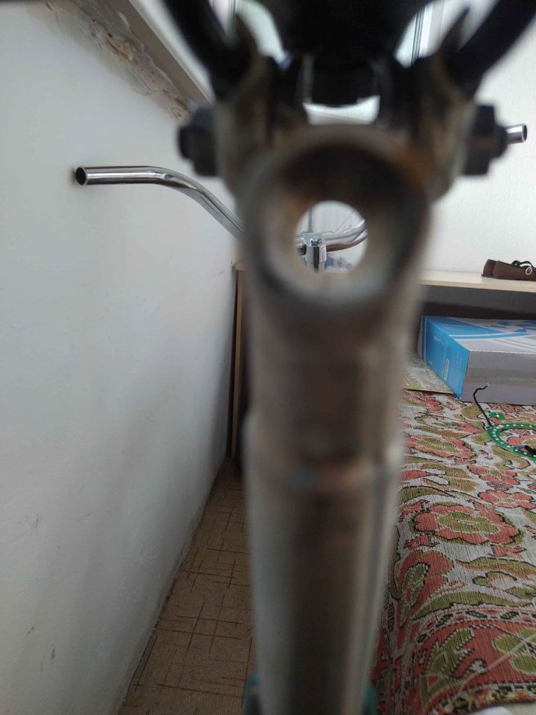 Изначально хотел завальцевать, как сделали на моём сш в своё время школьники, собрав рулевую без усатой шайбы. Гайку затягивали, шток завальцевался, 3 витка резьбы убито(не страшно). На Урале не получилось так же