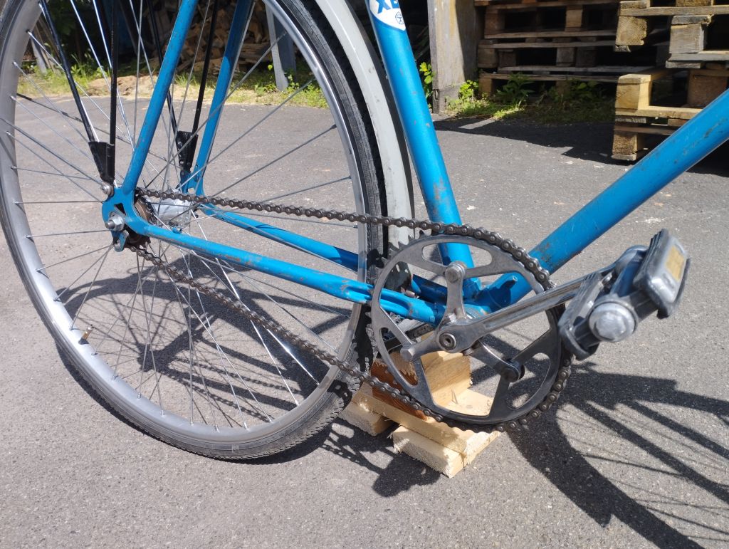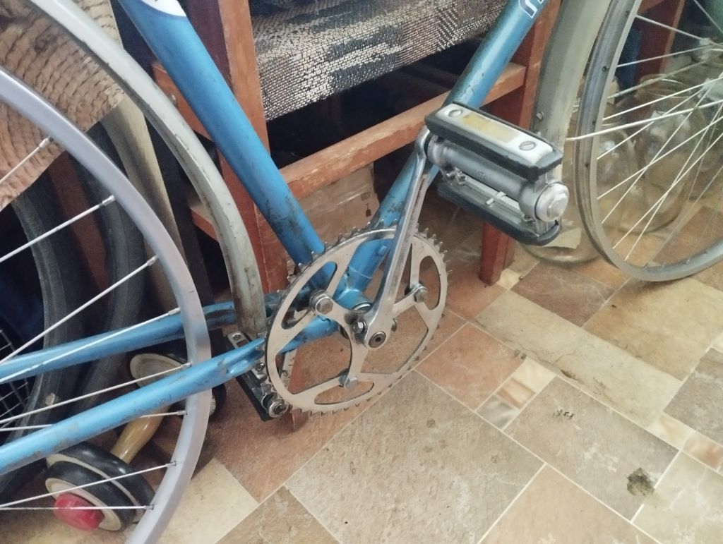 Все добре і я не загубився img/ag Велосипед потроху збирається до купи, вчора зібрав каретку і все що з нею зв'язано. Вал, як того не хотілося але поставив той що був з заготовкою не дивлячись на його дефект( з однієї сторони є вибоїна яку шліфовкою не прибрати)по нормальному треба заміна, заміна є але вал той набагато довший, + з тим що дефектний чайнлайн якраз той що треба,короче, побачимо img/bk  Відмив систему і замінив в ній одну бонку бо був звичайний гвинт з гайкою,відмив від фарби і перебрав педалі з якими мені допоміг товариш бо у заготовки була лише одна. Відремонтував сідло(був відламаний і подертий ніс сідла, загнуті рейли), теж було презентовано товаришем. З питанням про багажник вже остаточно вирішено. Фото того що є на даний час розмістив під споллер.