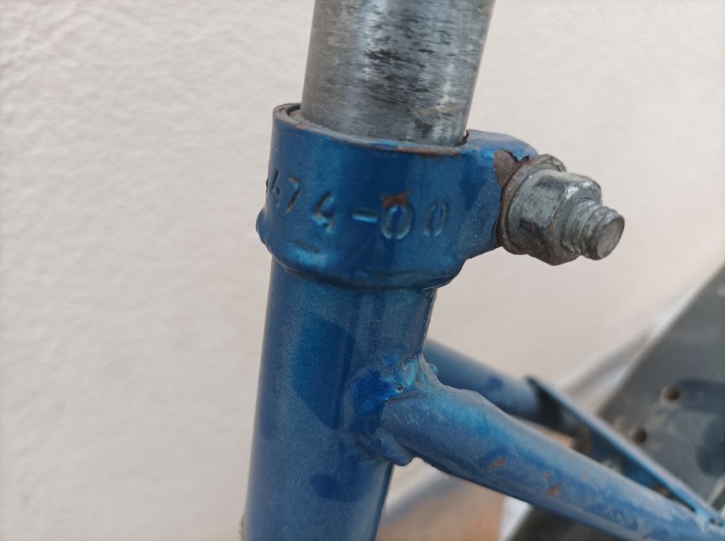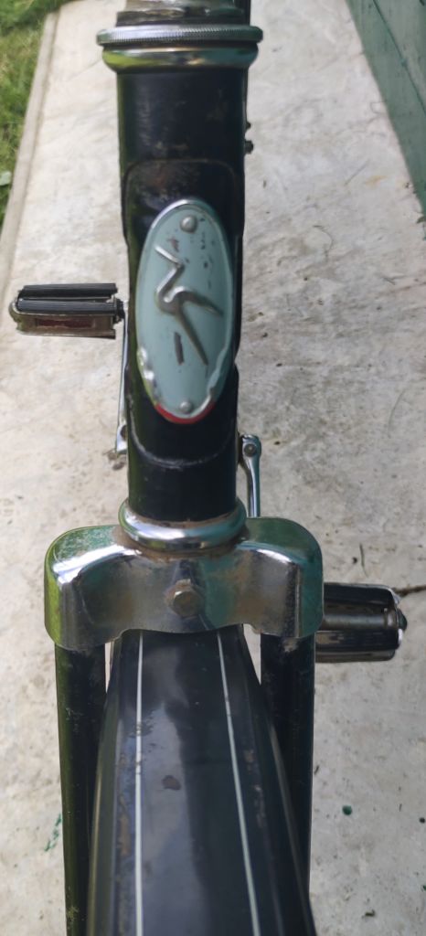 Из интересного: гайки на вал под квадрат другой формы (на ранних тоньше и элегантнее), клеймо на звонке ПЗ, грипсы червячки, звезда аля Кампаньола (с овалами), седло позднее уже на рельсах, верхняя гайка рулевой стандартная.