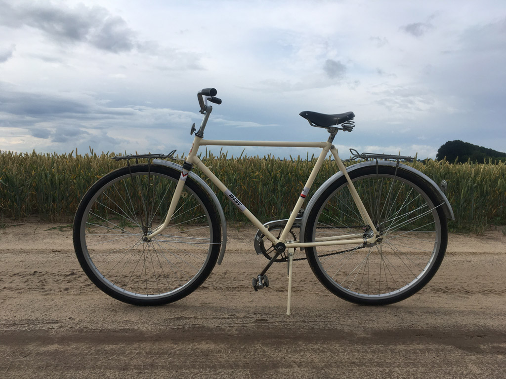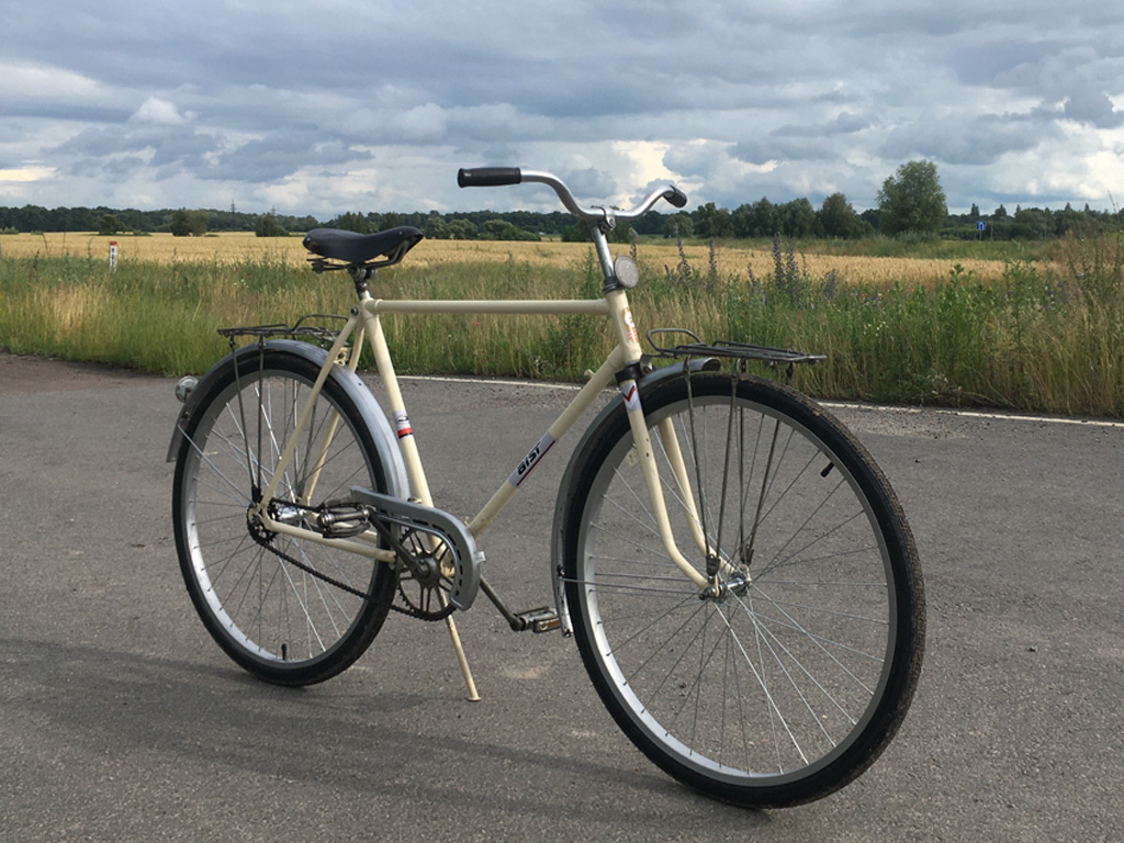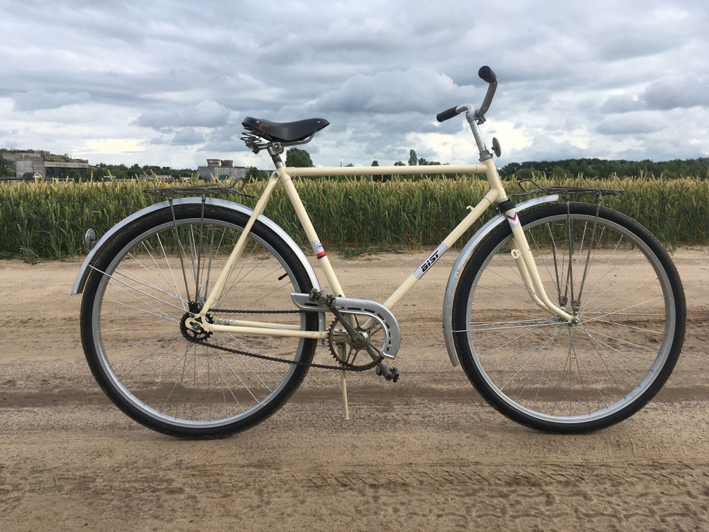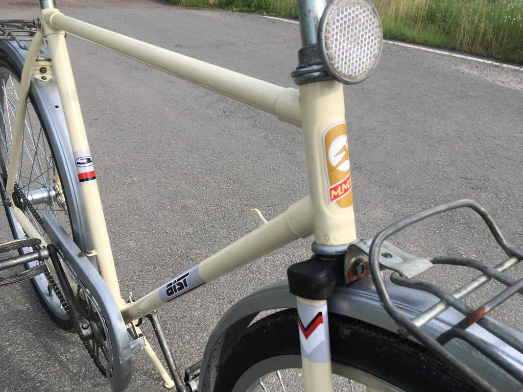 У меня были мысли, что это европейский какой-то велосипед (в них совершенно не разбираюсь), потому и не стал ничего подписывать, но руль очень похожий на ММВЗшный и щиток оставлял мысль, что мог быть какой-то малотиражный аналог Мира или Дружбы, учитывая схожий ручной тормоз.